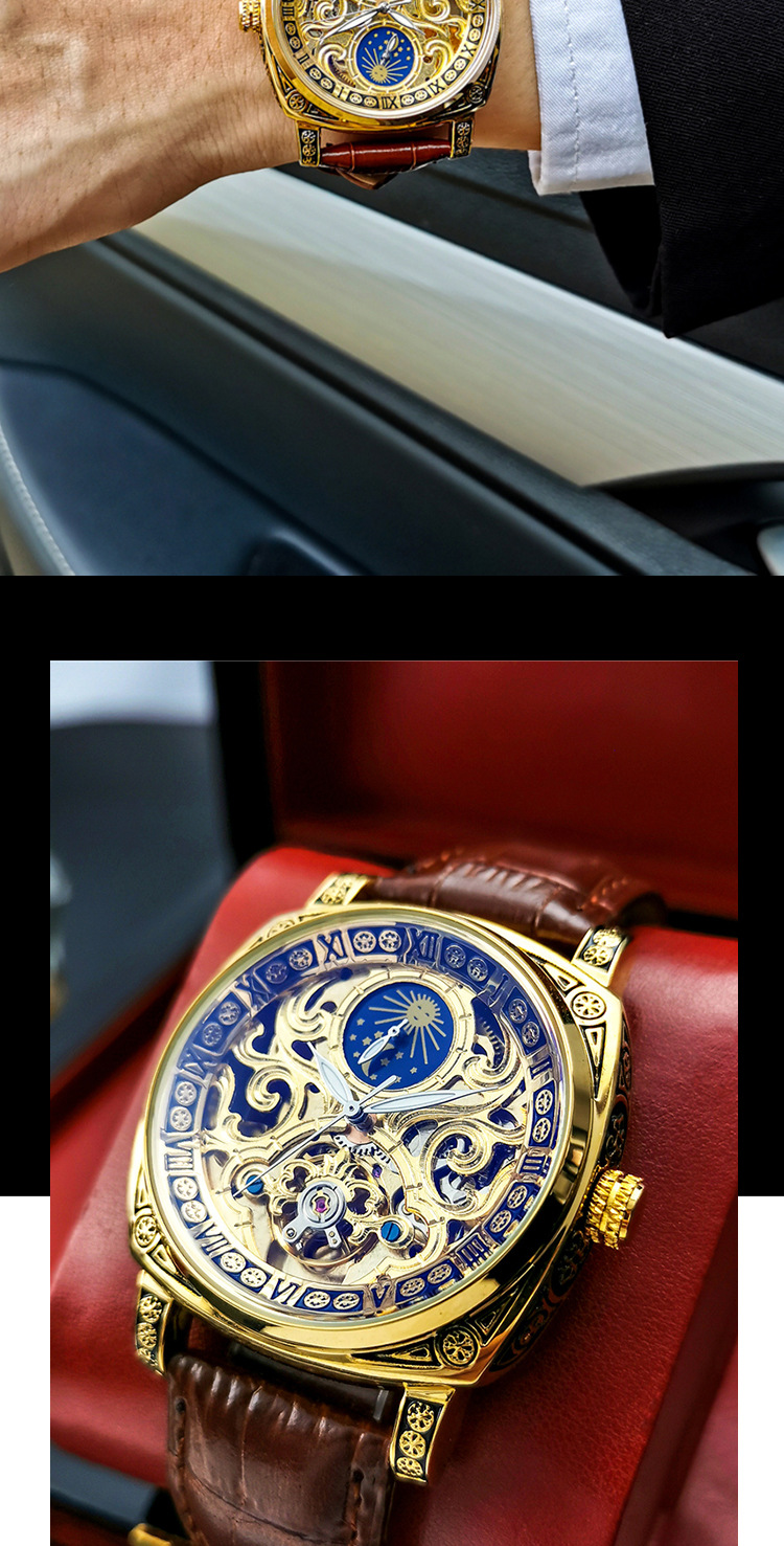 Discover the perfect blend of style and functionality with our stunning automatic mechanical watch. Designed for the modern man, this timepiece features a unique hollow-out design that showcases its intricate mechanics while offering a captivating view of the inner workings.